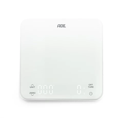Mesurez avec précision les ingrédients de vos recettes avec la balance de cuisine digitale Nuria ADE : de 1 g à 5 kg, son plateau en verre trempé blanc accueillera vos mesures avec une grande précision. Profitez de ses fonctionnalités avancées avec ses touches tactiles qui vous permettront de lancer la fonction tare, de changé l’unité de poids en g, oz, ml, lb: oz et FL: oz ou de déclencher la minuterie jusqu’à 9 min 59 s. Ergonomique, son large affichage LED s’intègre soigneusement dans cette balance au design compacte travaillé.