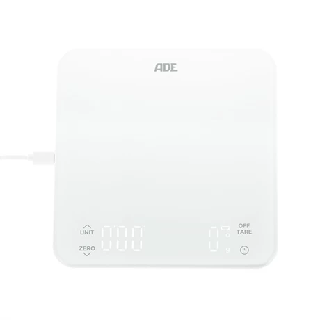 Pour restreindre l’impact environnemental de la balance avec minuterie ADE, une batterie au lithium est intégrée. Rechargeable par câble USB, vous pourrez l’emmener partout, vous trouverez toujours de quoi la brancher. Câble inclus avec la balance. Une balance précise, pratique et ergonomique avec la Nursia ADE.