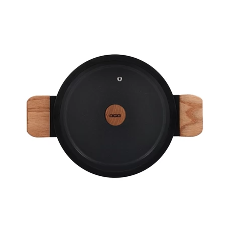 La marque Ogo a fait le choix d’un manche en bois brut naturel pour son manche. Placé suffisamment haut sur le bord de l’ustensile, il est parfaitement isolant de la chaleur et vous évite d’éventuelles brulures.