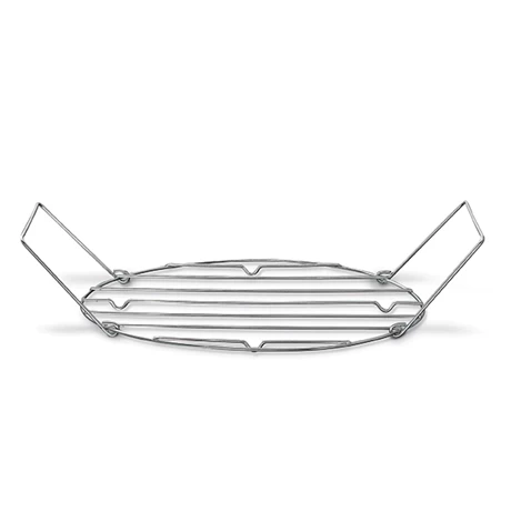 Avec votre grille pour roaster Roasty Cook 32 cm, il vous suffit de la placer au fond de votre roaster Roasty Cook 32 cm et positionner votre viande dessus pour la surélever. Ceci permettra à vos viandes d’éviter de toucher le fond où la graisse finit par tomber lors de la cuisson, et obtenir ainsi un résultat moins calorique, tout en préservant le goût. La grille est faite en acier inoxydable pour résister aux hautes températures et dispose de deux poignées latérales que vous pourrez rétracter pour économiser de la place lors de son rangement.