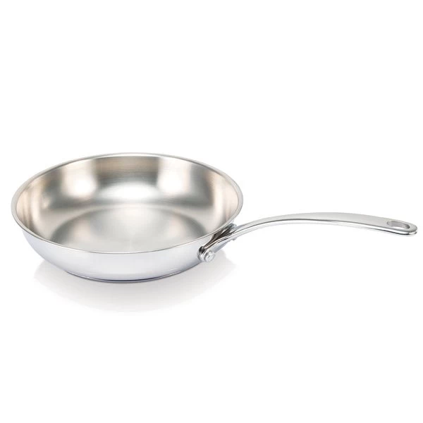 La poêle tout inox 20 cm Belvia est composée d’un corps tout inox avec un extérieur brillant et un intérieur mat. Son triple fond capsulé thermoradiant et d’une épaisseur de 4,1 mm, permettra une diffusion et une conservation optimales de la chaleur. Son bord verseur vous simplifiera le versement.
