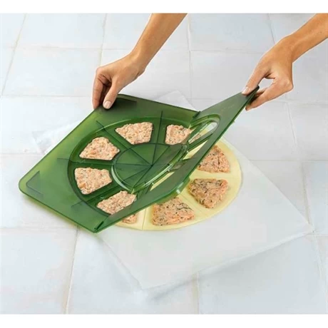 Vous voulez devenir un vrai pâtissier-boulanger en herbe ? Le croissantier Maxi Betty Bossi vous permettra de faire 8 croissants à la fois, de grande taille et en 30 minutes, de la pâte à la sortie du four. Pour cela, vous n’aurez besoin de rien d’autre que ce croissantier : après avoir étalé une pâte en rond sur 34 cm de diamètre environ pour coller à la taille de l’ustensile, appliquez le croissantier pour scinder la pâte en 8. Ensuite, appliquez la farce dans les fenêtres prédécoupées, enlevez le croissantier et roulez vos croissants. Enfournez, c’est prêt !