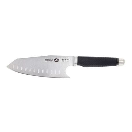 Le couteau du chef Asiatique de 15 cm FK2 de la marque de Buyer sera le partenaire idéal pour réaliser vos carpaccios, sushis, sashimis ou toute autre préparation nécessitant une découpe minutieuse. Grâce à sa fine lame japonaise en acier inoxydable alvéolée, ce couteau découpe la chair sans qu’elle ne s’attache et sans aucune corrosion. Son manche en polymère fibre de carbone antidérapant et son système de contrepoids ajustable vous procureront un excellent confort de coupe et une prise en main parfaite.