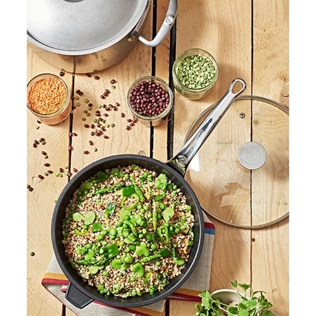Equipé d’une queue « à la française » revisitée pour un design moderne, la sauteuse Choc Extrême De Buyer se manipule facilement avec un manche ergonomique. Fabriqué en fonte d’inox, il permet d’isoler l’ustensile pour une manipulation sécurisée qui préviendra les brûlures.