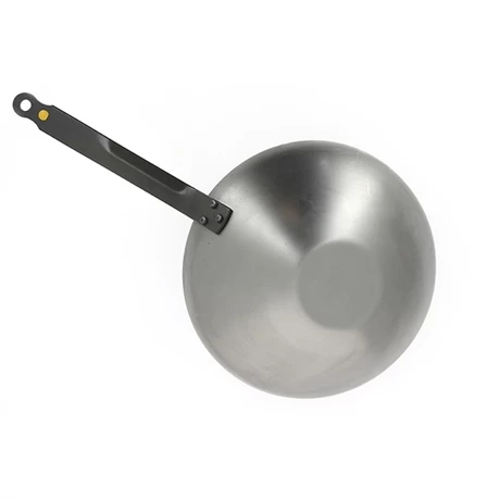 Compatible tous feux dont induction, et pouvant même être mis au four lors d’un passage flash dans une limite de 10 minutes et 200 °C, ce wok Minéral B De Buyer est très polyvalent, s’adaptant à toutes les cuisines. Equipé d’une queue feuillard courbée à la française, il se manie facilement et peut être rangé via le trou situé à l’extrémité. Rivetée, cette queue est indémanchable et vient se combiner au corps à jupe épaisse indéformable pour garantir une solide longévité à cet ustensile professionnel.