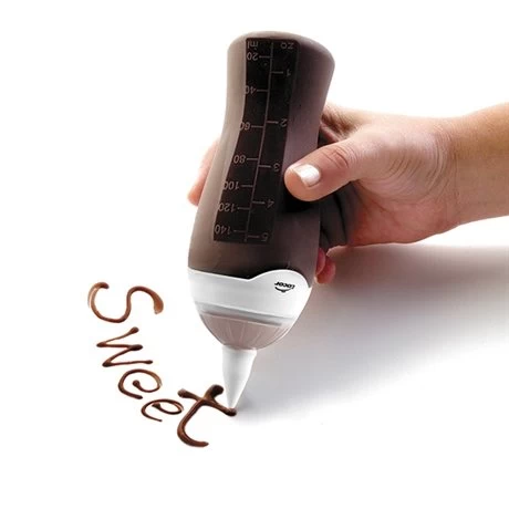 Le Flacon de décoration en silicone est l’ustensile idéal pour étonner vos invités avec des desserts uniques. En silicone, il permet de ravir les papilles de tous en décorant gâteaux, tartes etc. pour en faire des desserts originaux tout en simplicité. Ses 5 embouts de taille différents vous permettent une multitude de possibilité en personnalisant les nappages de vos cupcakes ou encore de vos macarons, profiteroles…