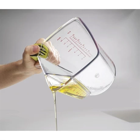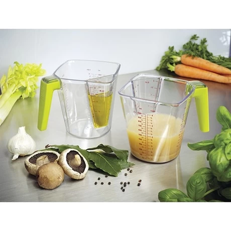 Ce Verre mesureur gradué 2 en 1 de Joseph Joseph contient 2 compartiments permettant de mesurer précisément des liquides de 5ml à 1L. Maniable, sa forme carré et sa poignée ergonomique permettent de verser facilement, et ses graduations faciles à lire permettent de faire une mesure précise à tout moment.