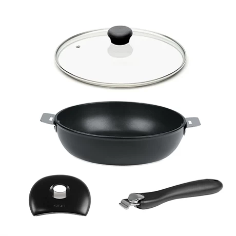 La gamme Cookway propose du matériel de cuisson de qualité en fonte d’aluminium et manches amovibles ainsi que des couvercles en verre trempé.