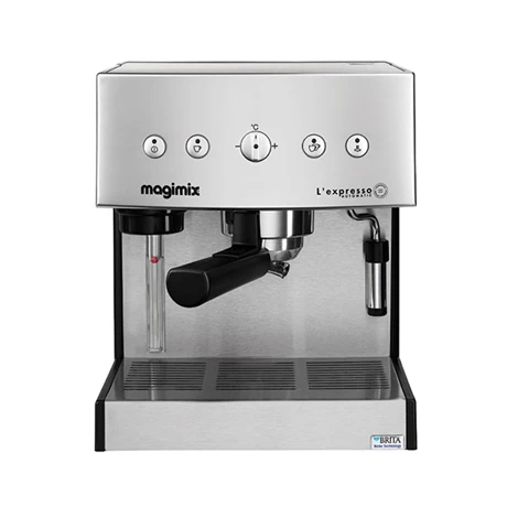 La cafetière Expresso automatique chrome mat est un indispensable pour tous les amateurs de café de par son design à la fois moderne et professionnel et ses performances. La cafetière possède 2 filtres, pour du café moulu ou dosettes. La pompe exerce une pression de 19 bars pour un café parfait ! Le réservoir de 1,8 L est amovible avec le niveau d’eau visible. Il est doté d’un filtre à eau avec cartouche Maxtra pour une eau plus pure, un débit rapide et un café au goût optimal !