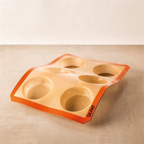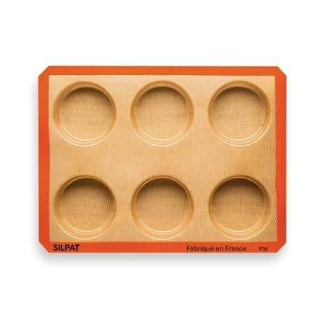 Génoises, fonds de tartelettes, meringues, flans, gratins, clafoutis, mini-pizzas… les idées sont nombreuses pour régaler petits et grands grâce à cette gamme dont fait partie le moule 6 grands ronds Silpat. Celui-ci résiste à des températures allant de -40°C à +260°C, passe au four et au congélateur sans se déformer, grâce à sa conception de qualité professionnelle. Il confectionne jusqu’à 6 gâteaux de 10 cm de diamètre et de 3,5 cm de hauteur.