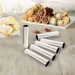 En inox, ils sont résistants et très simples d’utilisation : enroulez votre pâte autour, enfournez pour un résultat doré et croustillants. Pour un démoulage facile, n’hésitez pas à beurrer et/ou fariner vos tubes avant d’apposer la pâte autour. Une fois démoulés, il vous suffira de les garnir à la cuillère ou à la poche à douille.