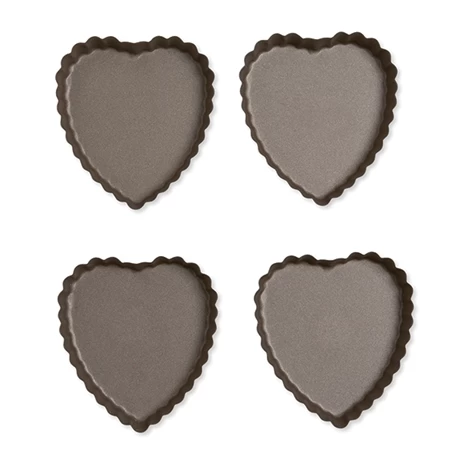 Avec ce set de 4 mini moules coeur Mathon, réalisez de délicieuses tartelettes, quiches ou pizzas individuelles aux bords cannelés en forme de cœur.