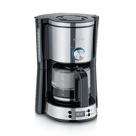 Et si vous vous leviez le matin et que votre café était déjà fait ? La cafetière filtre programmable 10 tasses 1 000 W KA4826 de chez Severin vous prépare votre café intense au gré de vos envies. Sa fonction « AromaSwitch » vous permet de choisir le degré d’intensité de votre café en tournant le bouton. Vous pouvez aussi choisir l’intensité de votre café selon la dose d’eau ou de café que vous décidez d’y mettre. Programmer plus facilement qu’un jeu d’enfant la machine avec l’écran, pour déguster votre boisson à l’heure que vous voulez. La verseuse graduée en verre vous simplifie la préparation et vous aide à savoir quelle quantité d’eau vous avez besoin selon le nombre de tasses souhaité. La quantité peut aller jusqu’à 10 tasses. Avec son design de qualité supérieure en inox, le nettoyage est facile et peut se faire au lave-vaisselle. Pratique, le porte-filtre passe au lave-vaisselle et possède un système anti-goutte.