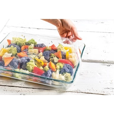 Découvrez ce couvercle rectangulaire Capflex élastique de 27 cm. Fabriqué en silicone alimentaire, ce couvercle est ultra fonctionnel de par son élasticité qui vous permettra de recouvrir parfaitement vos plats rectangulaires. Le silicone alimentaire est une alternative fonctionnel et écologique à vos ustensiles en plastique.