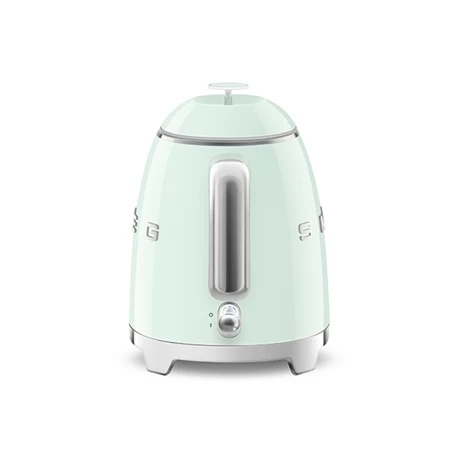 La mini bouilloire SMEG vert d’eau dispose d’une contenance de 0,8 L idéale pour une ou deux personnes, et ce jusqu’à trois tasses. Choisir un volume adapté à votre utilisation vous permettra d’économiser de l’eau et de l’énergie, et ses 1400 W vous permettront de diminuer le temps d’attente entre l’allumage et le service. Une fois portée à ébullition, la bouilloire s’éteint automatiquement afin d’éviter les problèmes de surchauffe. Vous pourrez attendre et vous resservir pendant un laps de temps allongé grâce à sa double paroi en inox aux propriétés isothermes renforcées. Petit plus, ce système de double paroi gardera les parois extérieures de la bouilloire froide : pas de brûlures lors de sa prise en main.