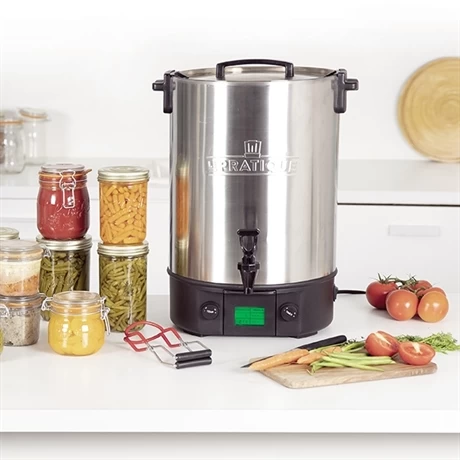 Découvrez la dernière génération de stérilisateur avec le stérilisateur électrique auto inox, Le pratique. Avec une puissance de 2200 W et sa capacité de 30L vous pourrez stériliser 14 bocaux de 1L sans difficulté. Equipé d’un écran LCD vous donnant accès à de nombreuses fonctionnalités telles que, la minuterie allant de 1 à 180 minutes et le thermostat réglable de 1°c à 100°c. L’écran vous permettra de paramétrer et de contrôler votre appareil tout au long de votre utilisation.